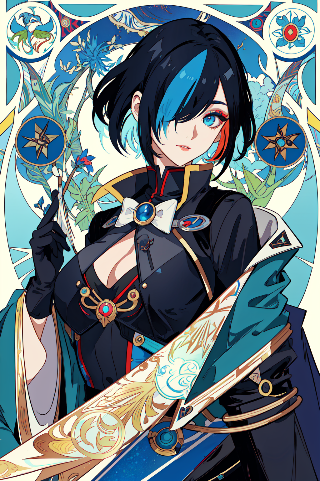 THIS WORKS BEST WITH PASTEL STYLE MODELS either Anime, Manga or otherwise. This is due to the original idea of Art Nouveau, which was popularised by Alphonse Mucha.