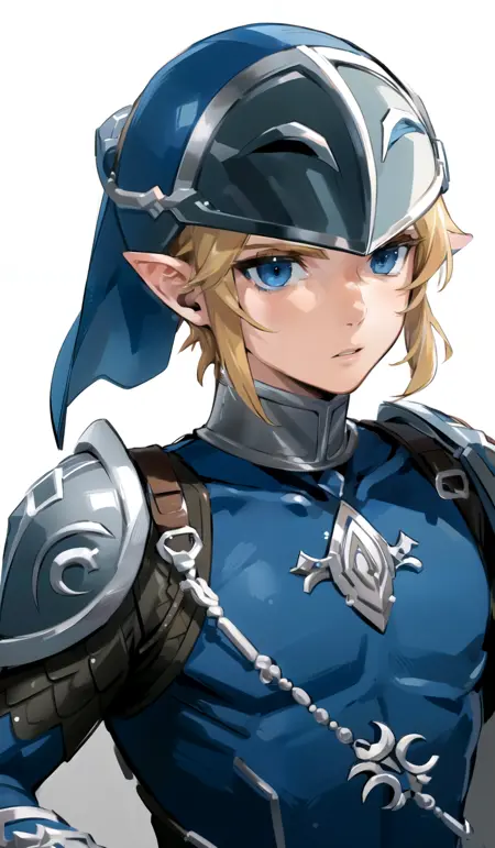 zoralink, blue eyes, male focus, blonde hair, helmet