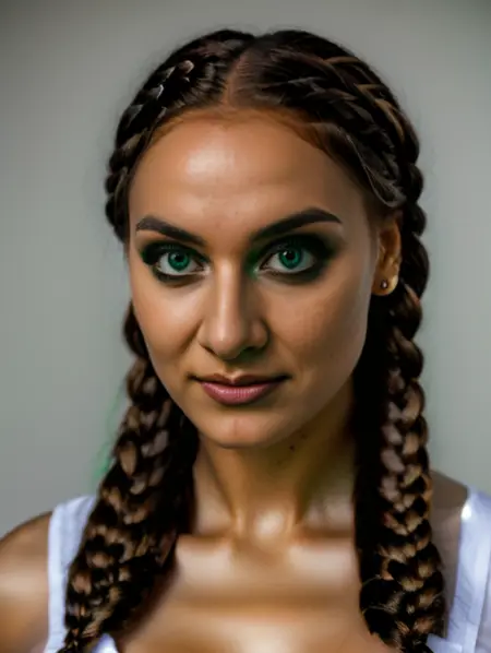 Luana is suppose to have: braid or braids, auburn hair, green eyes. Feel free to had this in your prompt for more efficience.