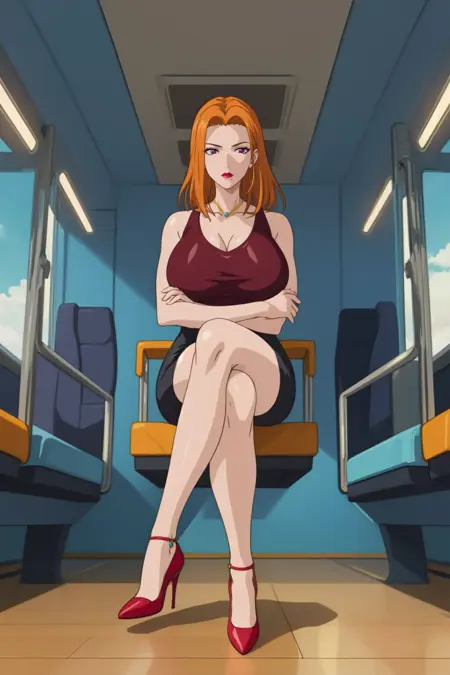 NaomiSakamoto, 1girl, mature female, solo, sitting on chair, full body,