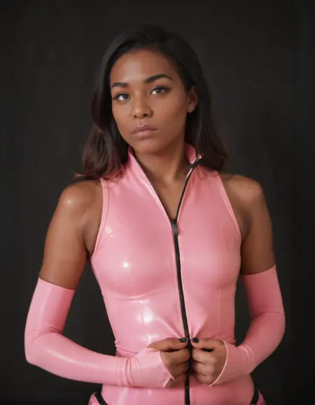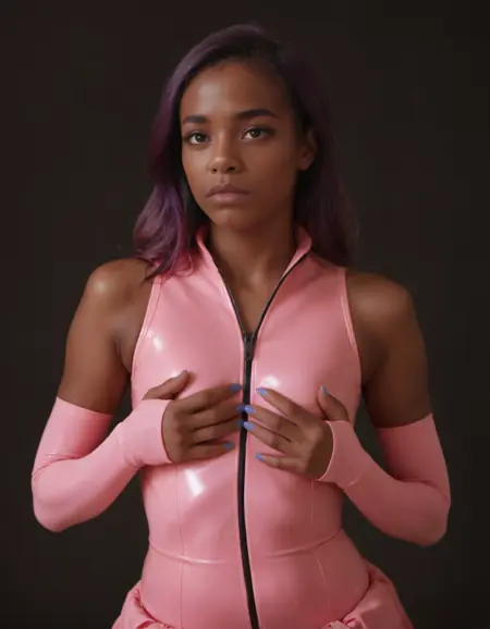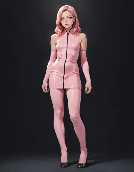 Keywords: pink thighhighs, pink dress, pink panties, elbow gloves, high heels, zipper