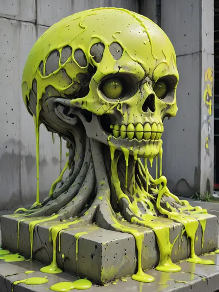 容易生成大量混凝土墙壁,因为大部分训练图片都是关于混凝土墙上的绘画(这也是为什么我需要额外创作一些包含不同主题雕塑和风景的图片)