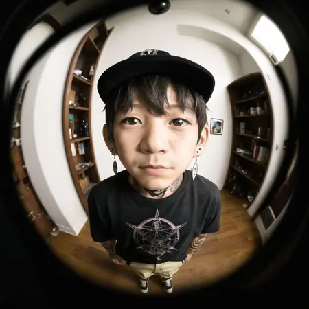 このLoRAは魚眼レンズで撮影された写真を使用して学習されています。