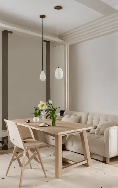 奶油原木风的室内设计模型,整体效果偏向暖色调,