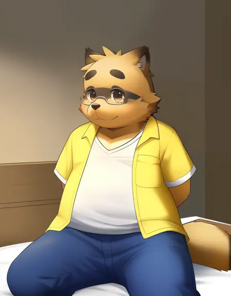 相关词:棕色毛发,双色毛发,身体毛发,棕色头发,棕色眼睛,tareme,浓眉,狗男孩,狗耳朵,浣熊耳朵,动物耳朵,动物鼻子,吻部,眼镜,敞开的衣物,短袖,牛仔裤,牛仔布,鞋子,相机,男性泳装,白色男性内衣