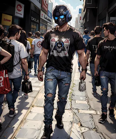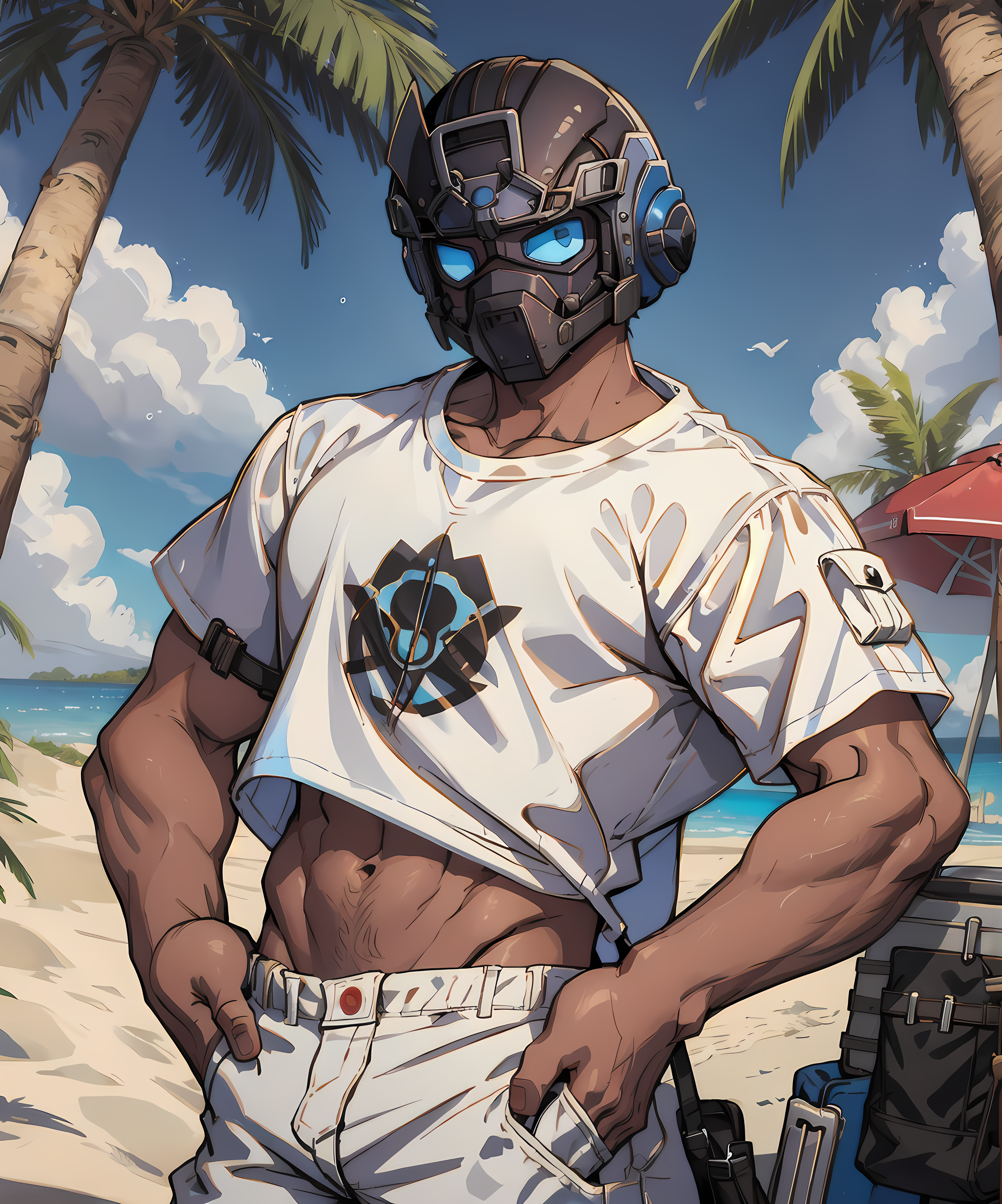 - If you want to make him able to wear some other clothes, I suggest you to use 0.65 - 0.75 as it weight. If you found his helmet not rendered correctly, use 'helmet' in the prompt.