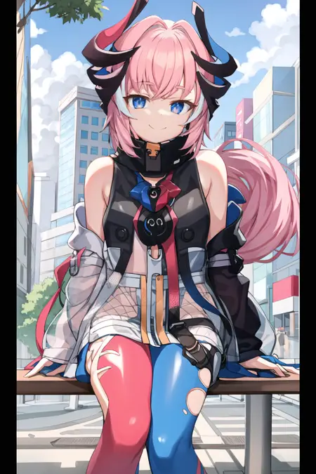 You can put (mismatched stockings, long hair:1.15) on prompt and (tail, mechanical tail, weapon, sword, holding, holding weapon, holding sword:1.15) on negative prompt for better consistency.