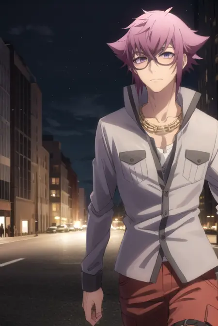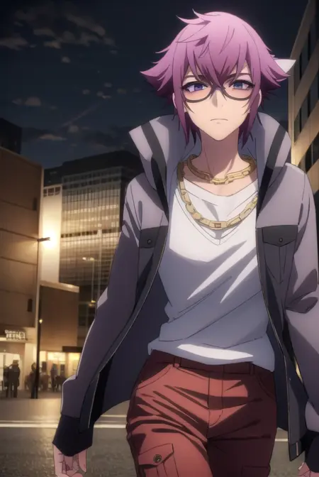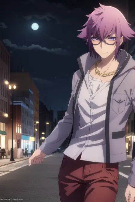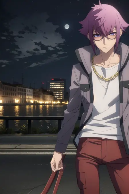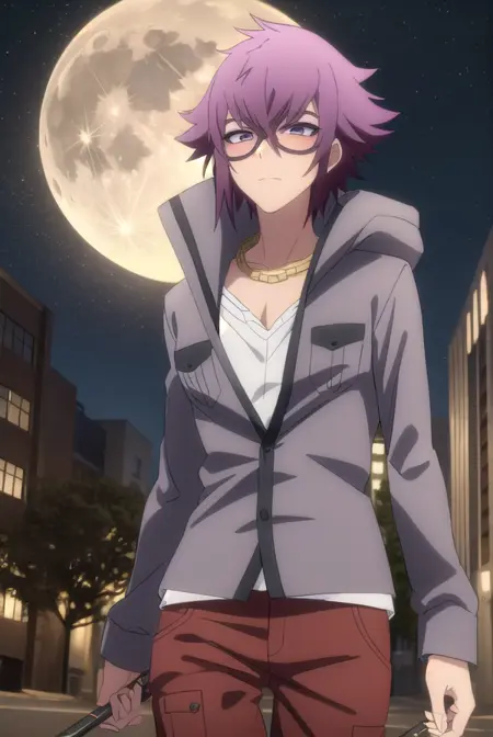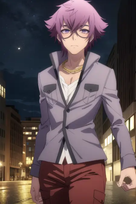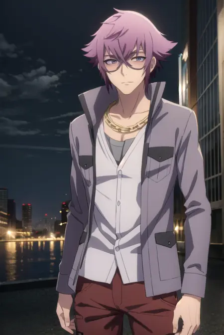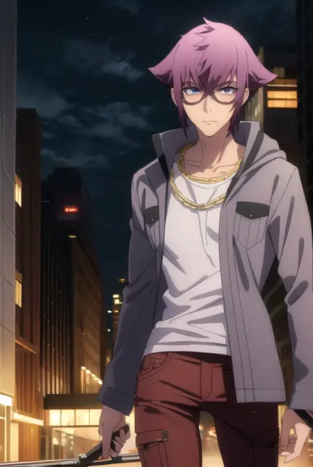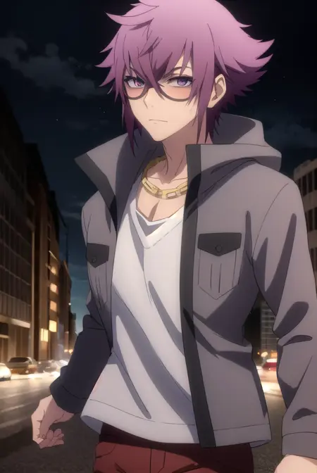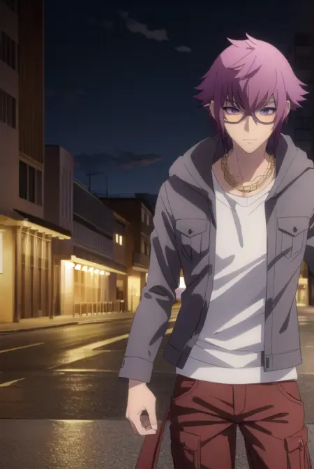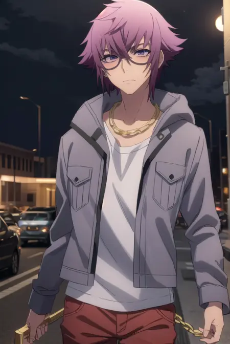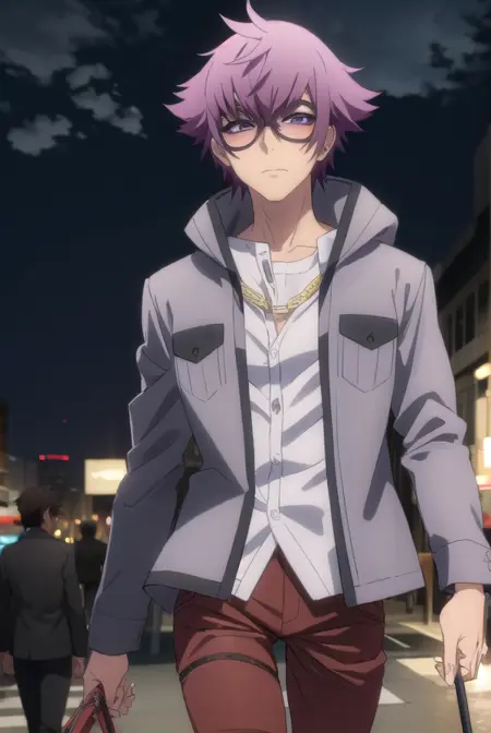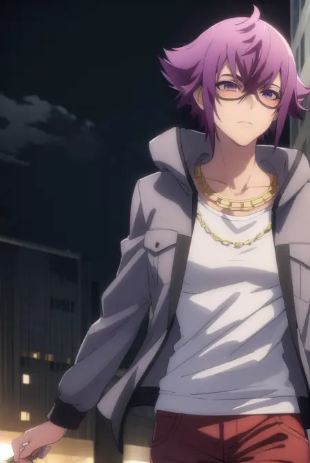yuuya mirokuji, purple hair, male focus, sunglasses,