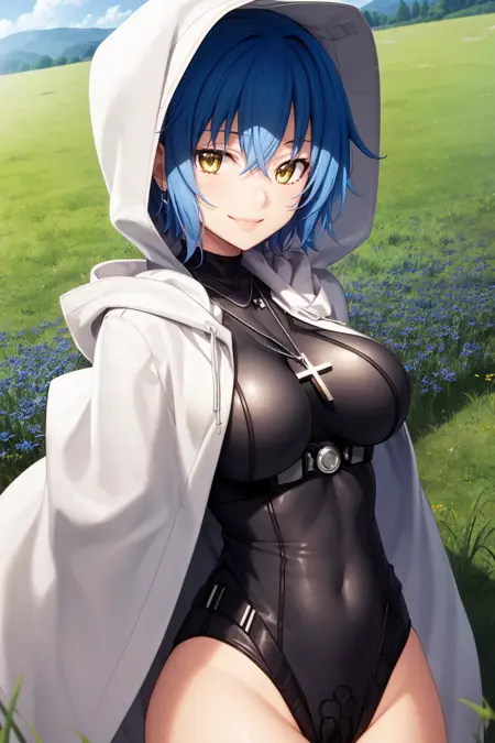 Basic outfit prompts : leotard, fingerless gloves, thighhighs, cross necklace
