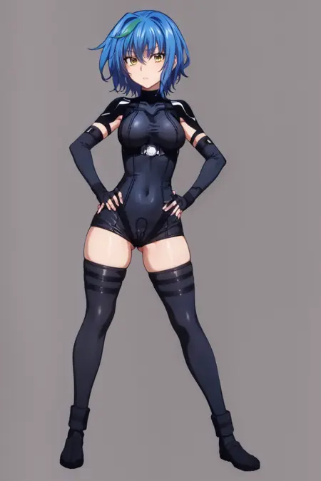 基础服装提示词:紧身衣, 无指手套, 过膝袜, 十字项链
