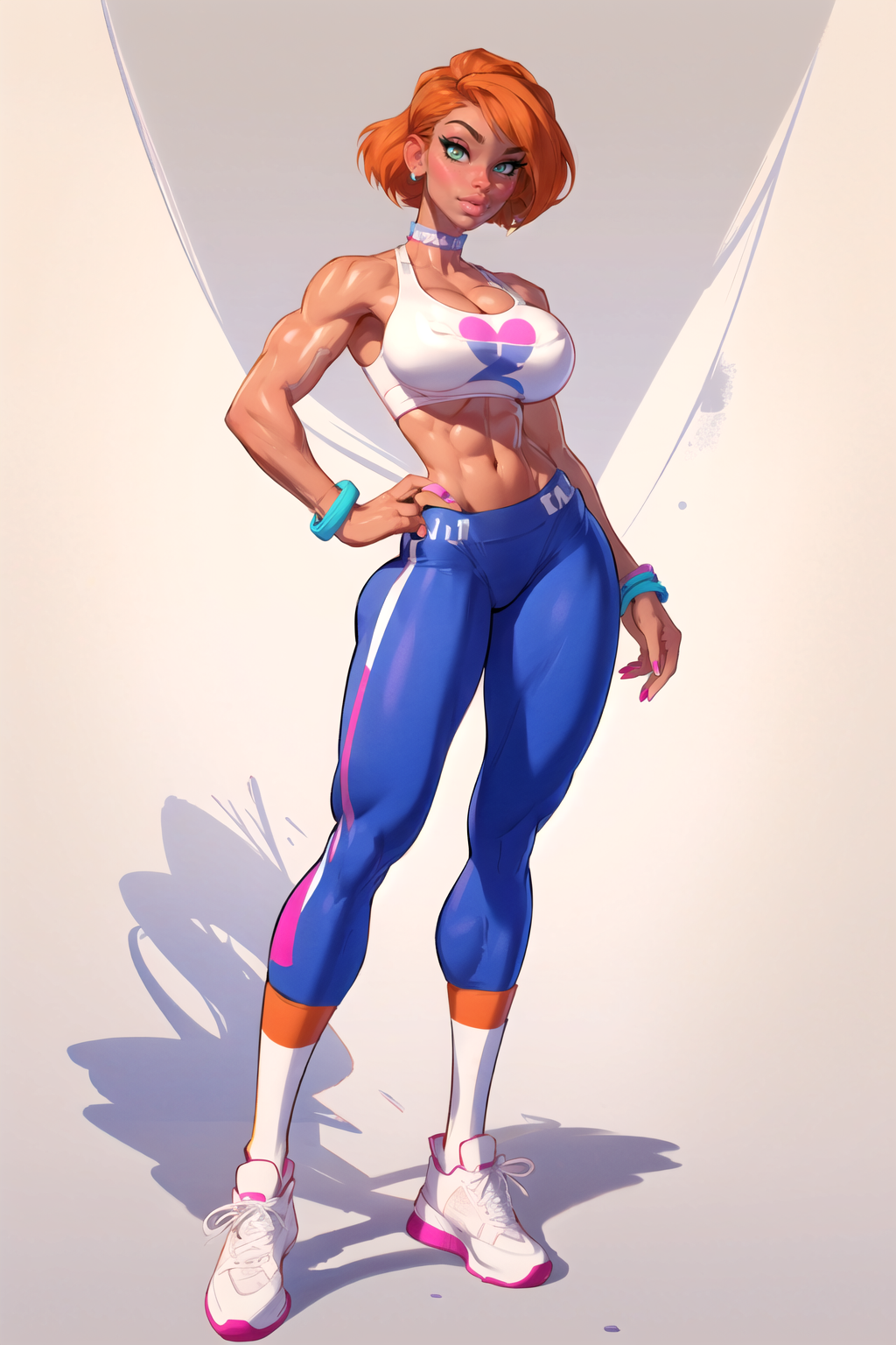 keywords i use: in PIT-Erotic-style style, muscular, bimbo, thick lips, small waist, large breast, large butt,