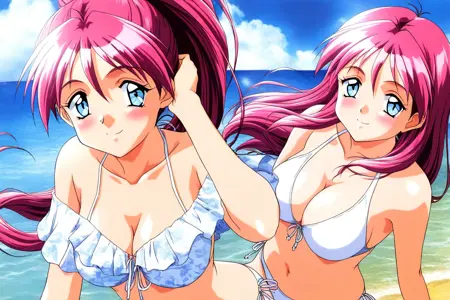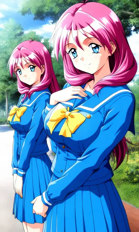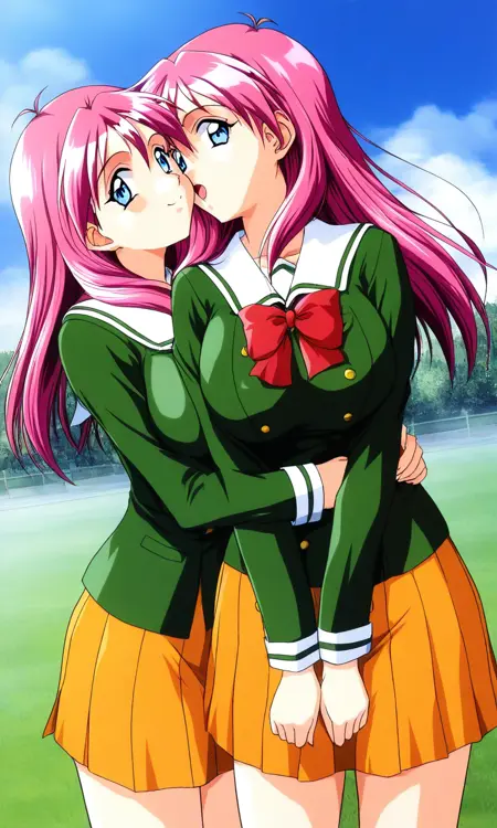 ときメモ2より 白雪美帆&真帆の双子姉妹です。妹の真帆は1のきらめき高校の生徒であの制服を着ていますがそれでも実は入れ替わってる可能性も。今回も素材提供ありがとうございました。妹の真帆はバストが85→90cmに増量し、一文字茜の次に巨乳だったりします。