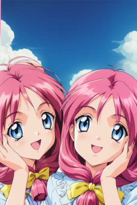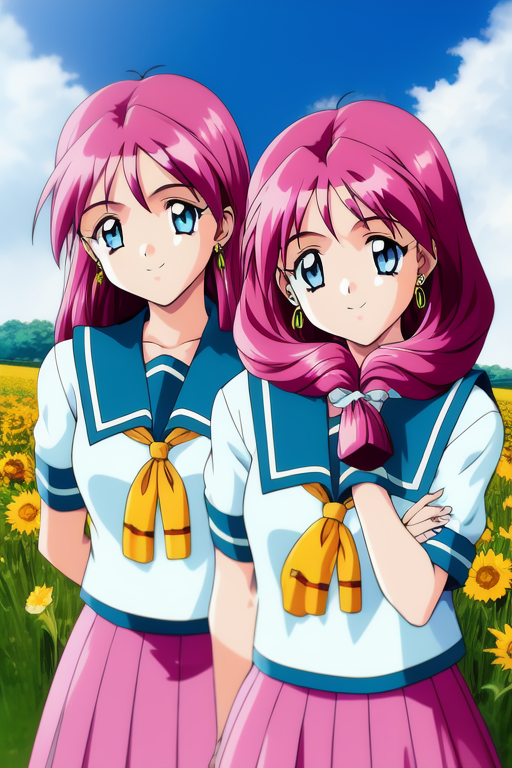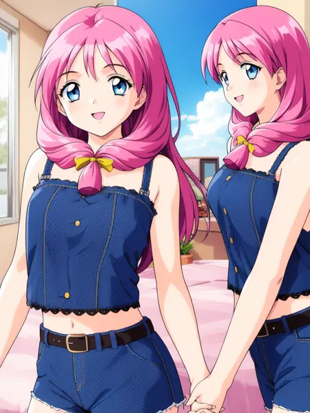 Shirayuki_Miho&Maho, pink hair, blue eyes, long hair, medium breasts,