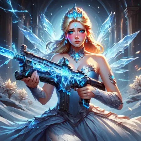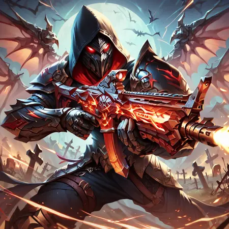 "score_9, score_8_up, score_7_up, score_6_up, score_5_up, score_4_up, (action shot of a fantasy game character wielding a white and green assault rifle, wearing white armor and hood, futuristic labb in background:1.2) vibrant, concept art, digital art, realistic"