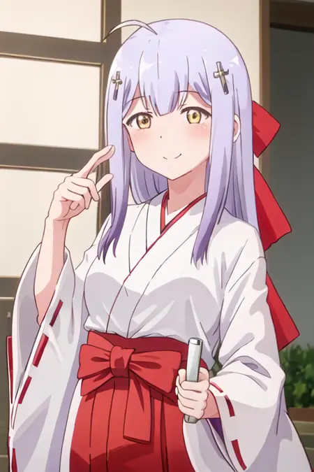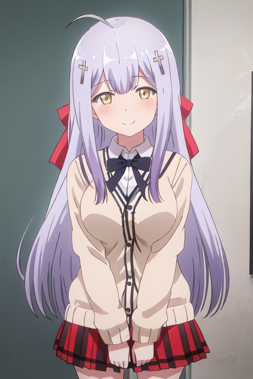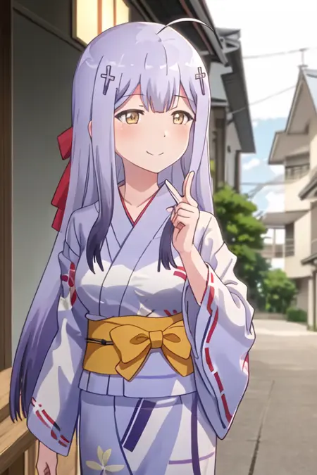The trigger word is raphiel_shiraha_ainsworth_gabrieldropout, and the recommended tags are best quality, masterpiece, highres, solo, {raphiel_shiraha_ainsworth_gabrieldropout:1.15}, long_hair, hair_ornament, cross_hair_ornament, smile, ahoge, bow, blush, closed_eyes, light_purple_hair, yellow_eyes, hair_bow.