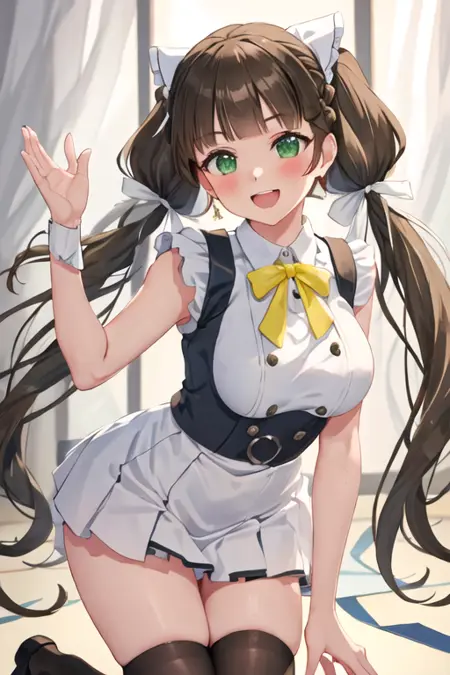 触发词为 sakurakouji_kinako_lovelivesuperstar,推荐标签为:best quality, masterpiece, highres, solo, {sakurakouji_kinako_lovelivesuperstar:1.15}, bangs, brown_hair, long_hair, green_eyes, twintails, low_twintails, blunt_bangs, smile, braid, blush, ribbon, open_mouth, breasts, hair_ribbon。