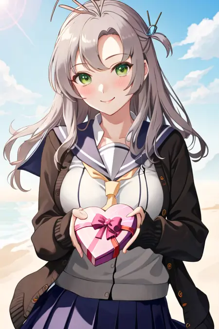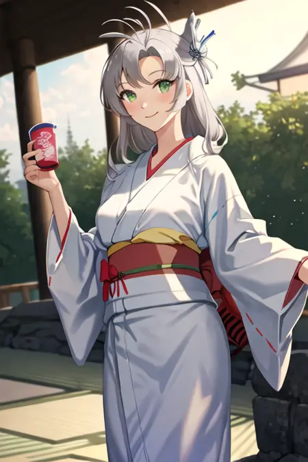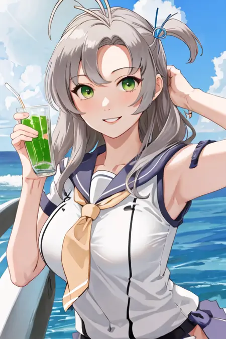 트리거 단어는 kinugasa_kantaicollection이며, 권장 태그는 best quality, masterpiece, highres, solo, {kinugasa_kantaicollection:1.15}, green_eyes, grey_hair, antenna_hair, long_hair, breasts, smile, hair_tie입니다.