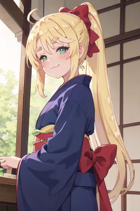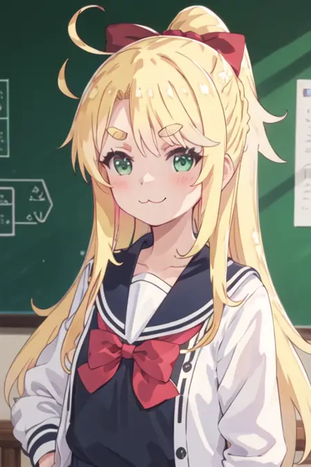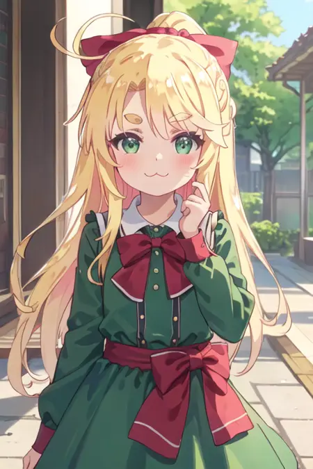 トリガーワードは noa_himesaka_watashinitenshigamaiorita であり、推奨タグは best quality, masterpiece, highres, solo, {noa_himesaka_watashinitenshigamaiorita:1.15}, blonde_hair, blush, long_hair, bangs, :3, bow, green_eyes, closed_mouth, hair_bow, red_bow, smile, ahoge, thick_eyebrows, ponytail です。