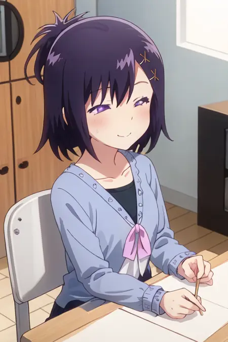 The trigger word is vignette_tsukinose_april_gabrieldropout, and the recommended tags are best quality, masterpiece, highres, solo, {vignette_tsukinose_april_gabrieldropout:1.15}, purple_hair, short_hair, hair_ornament, hairclip, x_hair_ornament, purple_eyes, closed_mouth, blush.
