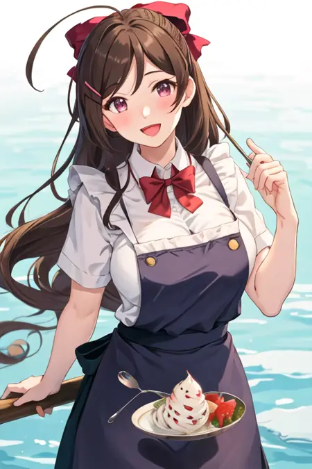 The trigger word is mamiya_kantaicollection, and the recommended tags are best quality, masterpiece, highres, solo, {mamiya_kantaicollection:1.15}, brown_hair, long_hair, ribbon, hair_ornament, hairclip, hair_ribbon, ahoge, breasts, large_breasts, smile, blush, red_eyes, purple_eyes.
