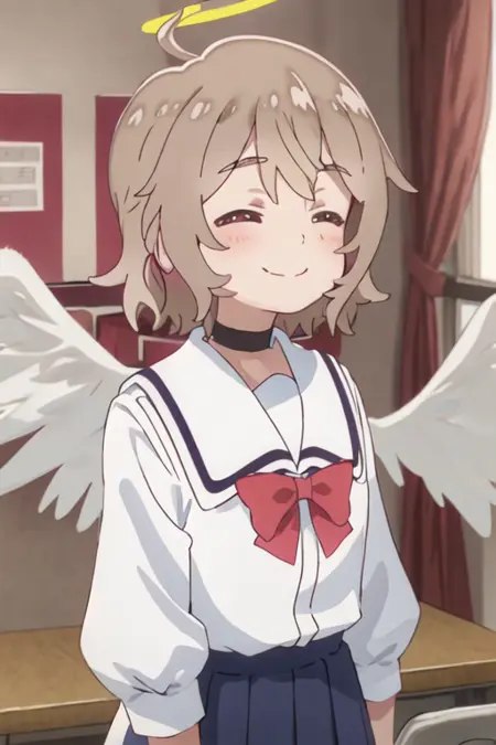 The trigger word is kanon_konomori_watashinitenshigamaiorita, and the recommended tags are best quality, masterpiece, highres, solo, {kanon_konomori_watashinitenshigamaiorita:1.15}, blush, brown_hair, smile, short_hair, ahoge, bangs, brown_eyes, closed_mouth, closed_eyes.