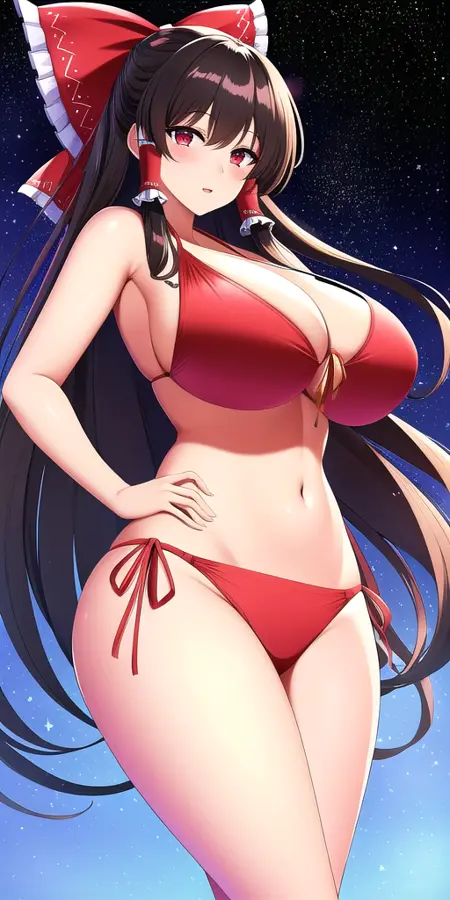 Regardless! Here we have our favorite miser miko of the barrier. I did my best to go for a more mature Reimu, there's enough canon or loli versions around, hell even OG NAI can more or less cope.