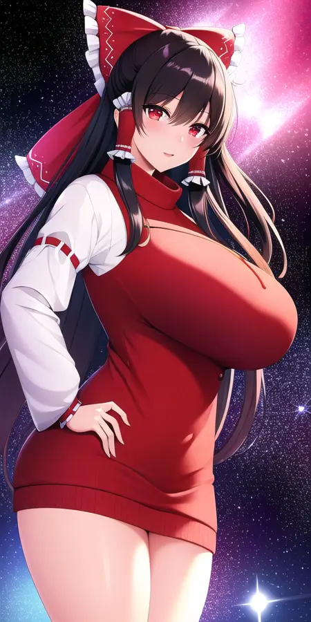 但不管怎样!这里是我们最爱的结界守财奴神社巫女。我尽力塑造了一个更成熟的灵梦形象,因为市面上已经足够多的官方或萝莉版本了,甚至连原始NAI都能差不多应付。