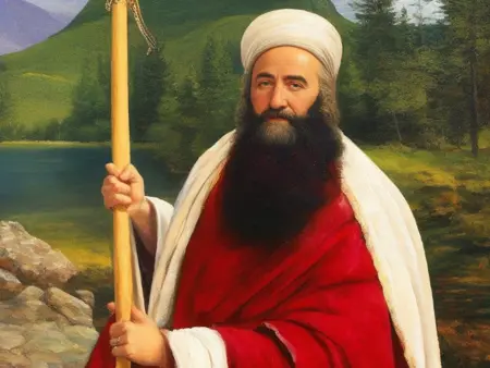 一幅描绘留着长白胡子的男人手持木棍、身着红色长袍的画作 EMB_JWTT-150