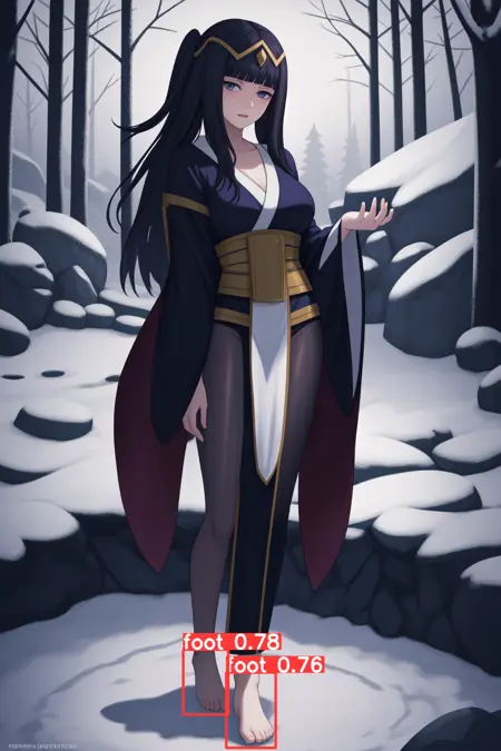 For images of feet that takes up a great majority of the canvas, sometimes it detects them, sometimes it partially detects them, and sometimes it detects one but not the other. Arguably, this model wasn't designed for such images, even though such images were included in the training dataset, because what this model does is crops the total canvas to focus on its target; feet, in order to dedicate a lot of image generation to refine/modify said feet. If feet are already the focus of the image, taking up 50% or more of the total canvas, then this model effectively serves little in the way of refining the target. One can still use it for that purpose if they so please, but it might lead to more problems than solutions, depending on how you use it.
