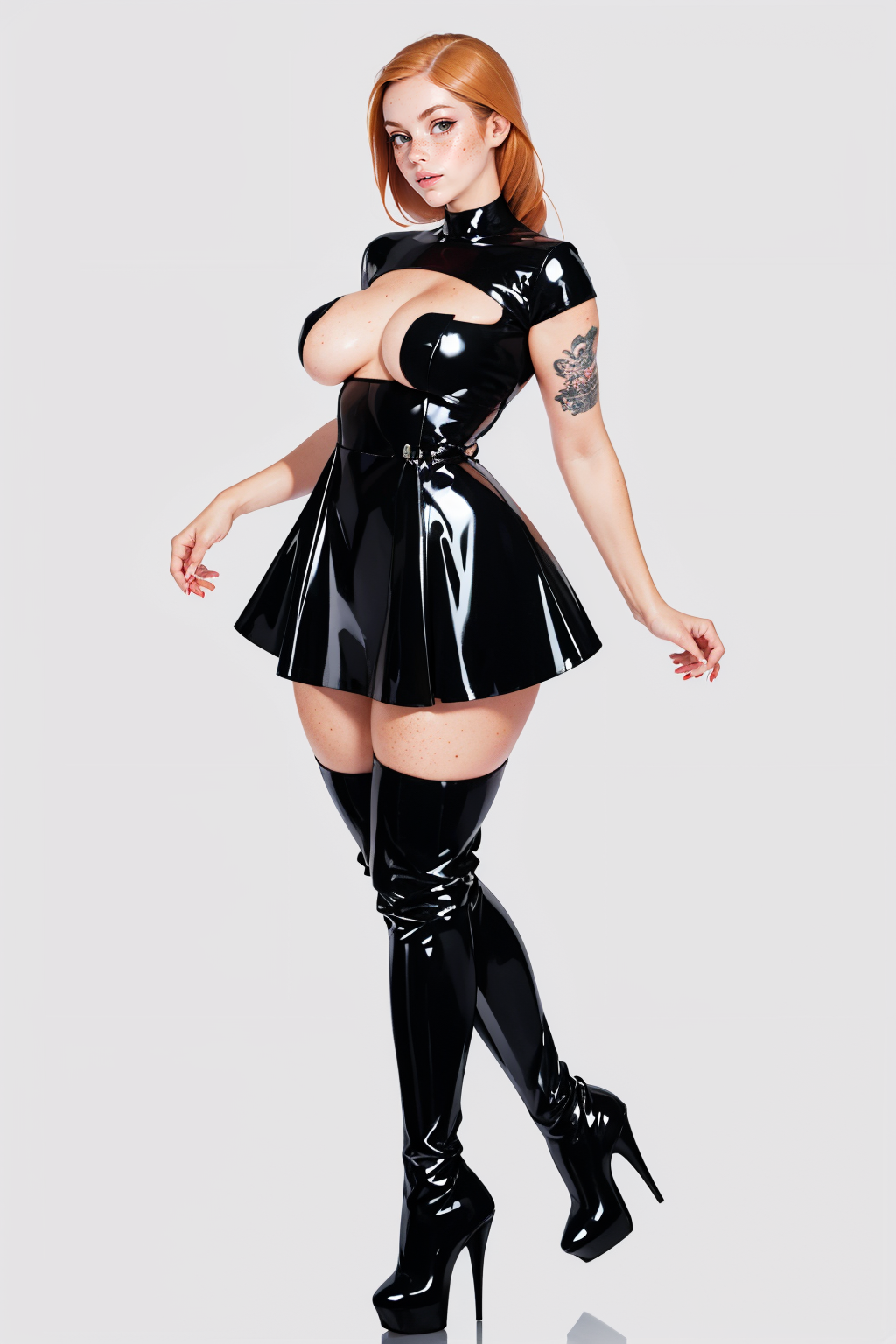 lat3tch3stcut0ut, black dress, short latex dress, red pasties,