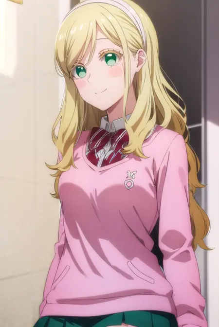 carol olston, 長い髪, ブロンドの髪, (緑の目:1.3), ボウ, 髪留め, ボウタイ, チークステッカー,