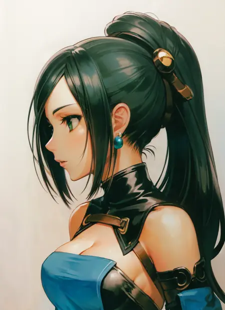 WARNING: that kind of cape with the hanging rings in her back is problematic. I've isolated it under the "cape" tag, but even then the rings may popup from time to time. If you plan to use it keep in mind that the success rate is on the low side; it's mostly hidden in most of the artwork, and SD may confuse it with her hair or put the rings in her hands.
