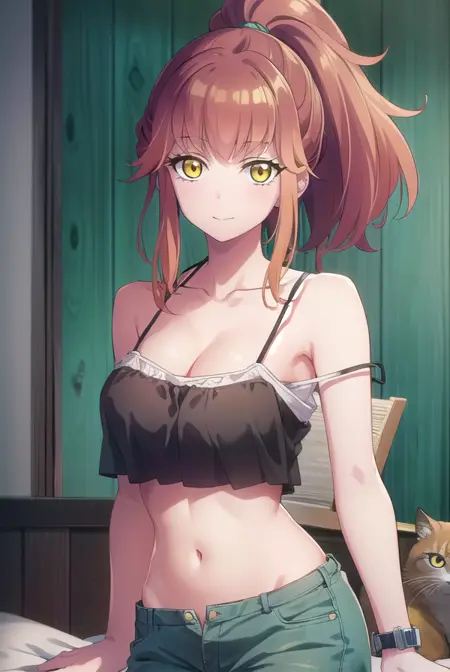 misaki jinguuji, long hair, brown hair, (yellow eyes:1.3), ponytail,