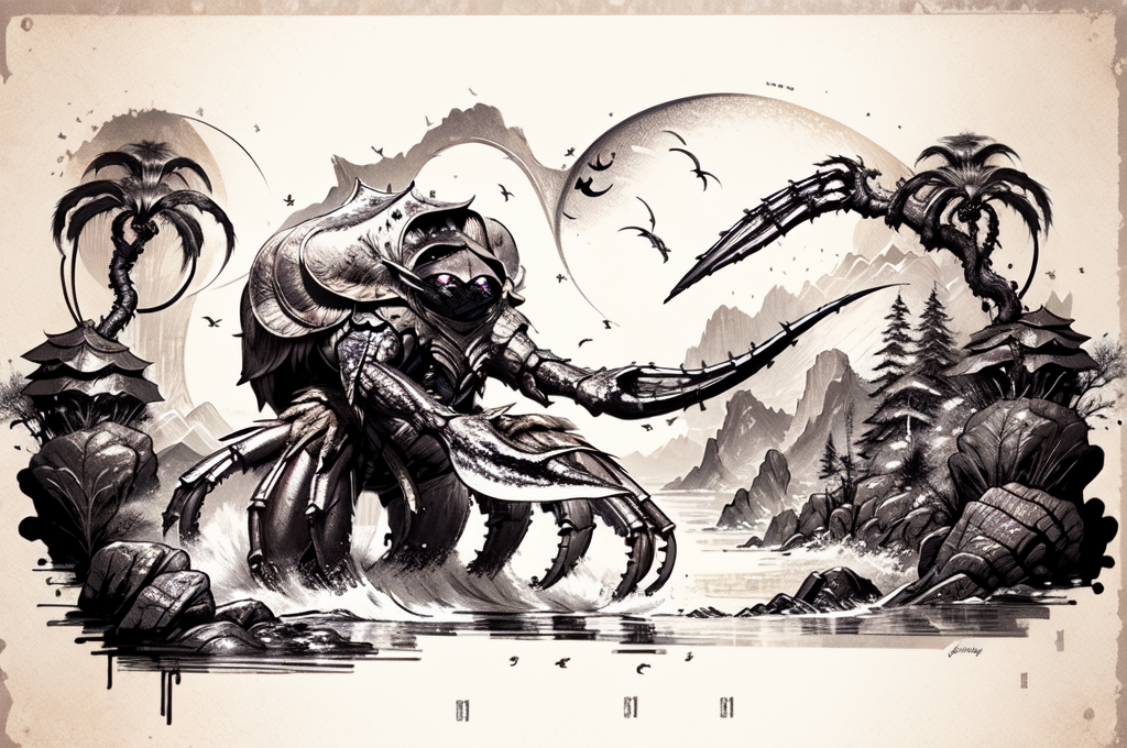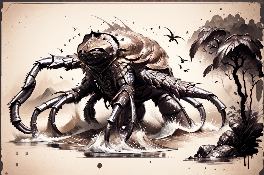 'garthim, giant bug, large shell, crab legs, claws, full body, dark cave'