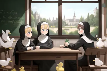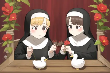 유용한 태그를 게시물의 이미지에서 확인하세요 (이 게시물에 구글 시트 링크를 삽입할 수 없습니다). 대괄호는 이스케이프 처리가 필요합니다. 예: clumsy nun \(diva\)