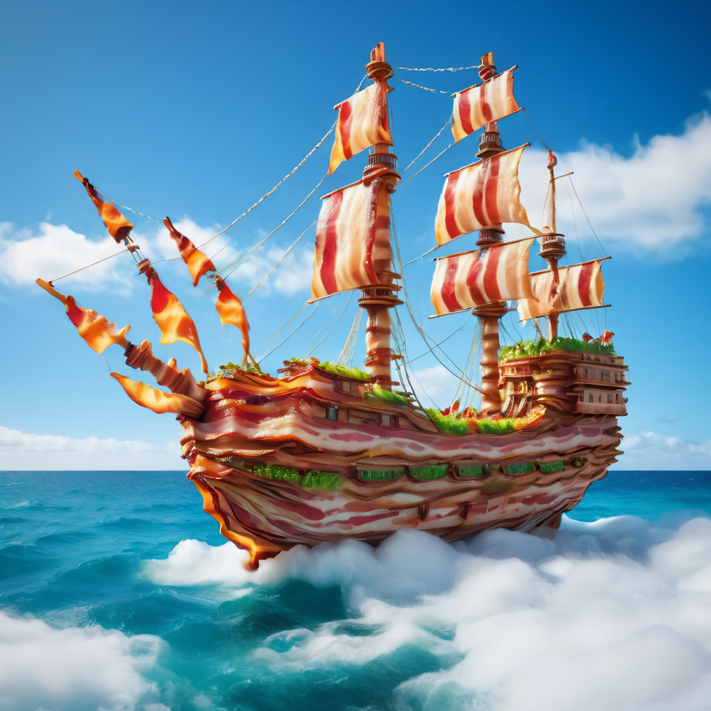 Try made out of b4c0n, or made out of bacon in the prompt could get better results.