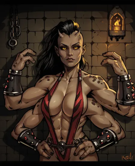 - 대체 서양 스타일 - 캐릭터에 따라 포즈 표현에 더 적합하며, NSFW에는 덜 적합할 수 있습니다. 캐릭터의 체형을 더 두꺼우거나 근육질로 만들며, 빨간색 또는 노랑/갈색 계열로 표현할 수 있습니다.