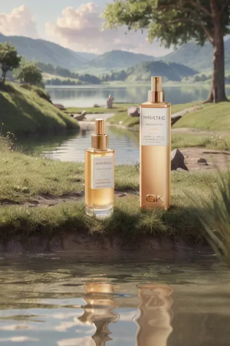 (masterpiece:1.4),(top quality:1.35),(best quality:1.1),(ultra-realistic:1.33),official art,(beautiful and aesthetic:1.2),(8k, best quality:1.1),(masterpiece:1.2),CGproduct bsw,no humans,sky,outdoors,scenery,cloud,day,blue sky,nature,water,bottle,grass,blurry,lake,cloudy sky,tree,<lora:MooMoo-Golden Cosmetic:1>,