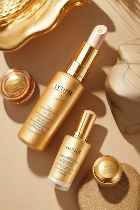 (Hyper quality:1.41),High resolution,Colorful,Extreme Details,Vivid Colors,(masterpiece:1.42),golden water,golden background,waves,Cosmetic,rocks,<lora:MooMoo-Golden Cosmetic:1>,Negative Prompt: