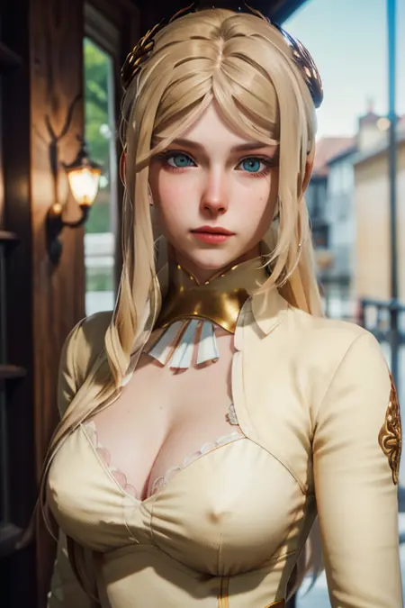 프롬프트: 놀라우며 정교한 초고화질 컬러 초상화, 카우보이, 지휘관의 이미지: 1.2, 긴 금발 머리, (녹색 눈), (흰색 드레스), HDR, 명작, 최고 품질, 정교함, 8k, 장대한 캐릭터 구성, alessio albi, nina masic, 선명한 초점, 자연광, 피하 산란, f2, 35mm,