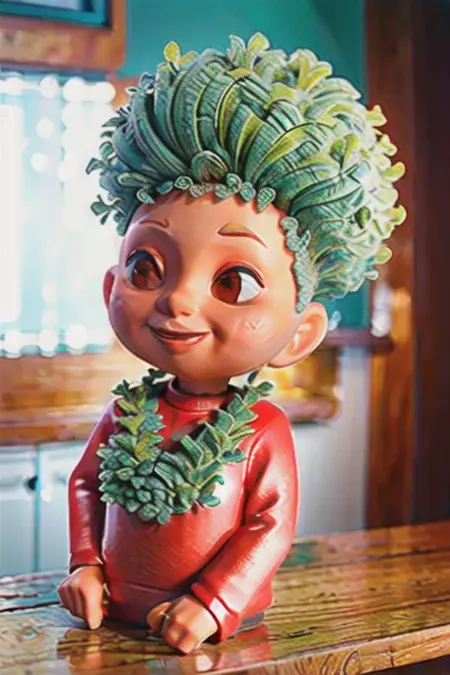 A somewhat experiment chia-style model. Trained on various images of grown chia pets, and fan made chia creations. Doesn't work amazingly on realistic models, but fairly well on 2d. Give anything with hair chia instead!