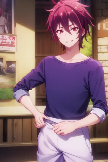 sora, 검은 머리, 남성 중심, 솟아오른 머리, (빨간 눈:1.3),