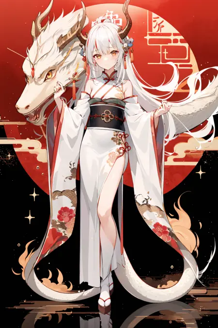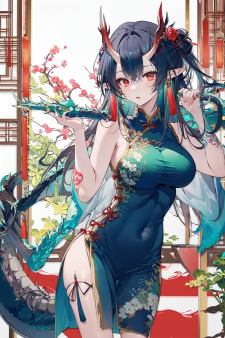 Since it's almost the Year of the Dragon, we definitely need to see some dragon girls, right? That's why I trained this Lora. She is a dragon girl with elements inspired by Chinese Eastern dragons, not the Western type of dragons. Most of the inspiration comes from recent New Year greeting artworks.