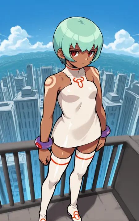 彼女の通常形態はほぼ完璧だが、衣装のシンボルが服を変更しようとしたときに残ってしまうことがある。この問題は、プロンプトから「tattoo」というタグを削除することで解決できる。なぜかこのタグが肩のタトゥーではなく衣装のシンボルを吸収してしまうためだ。