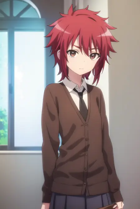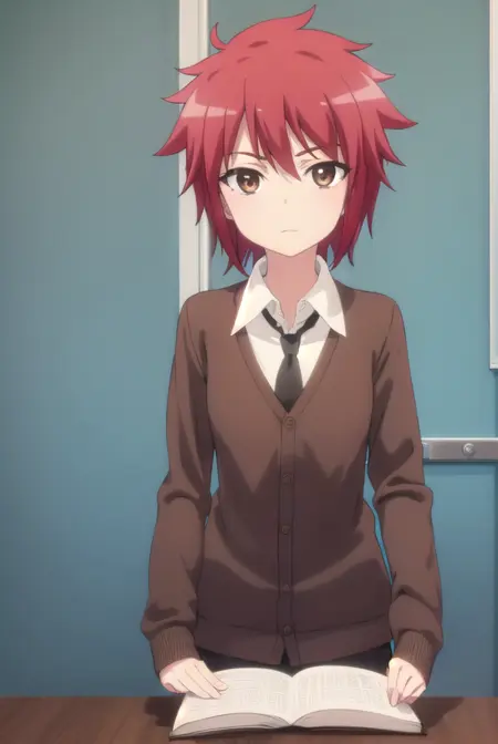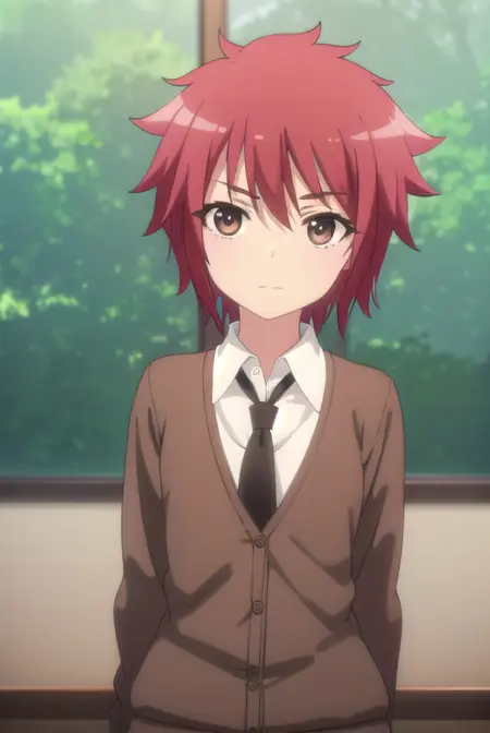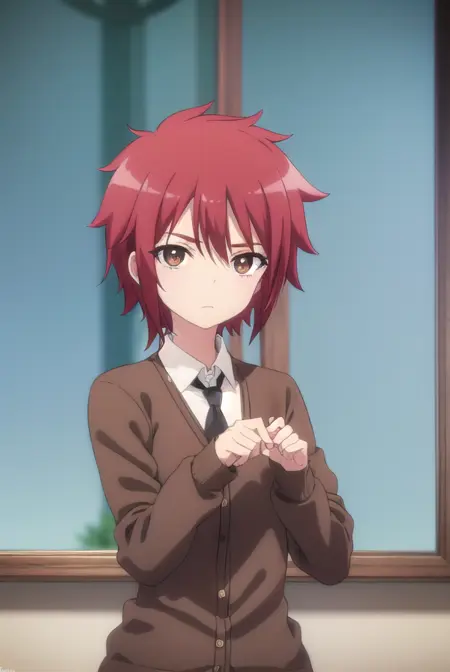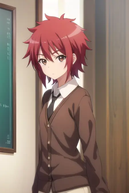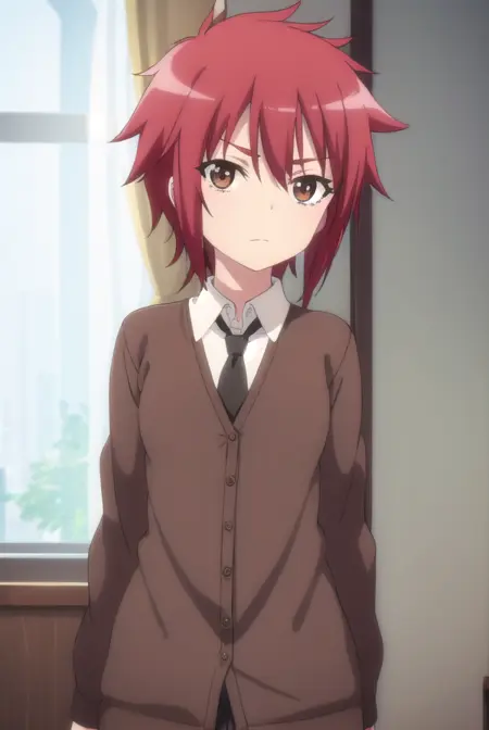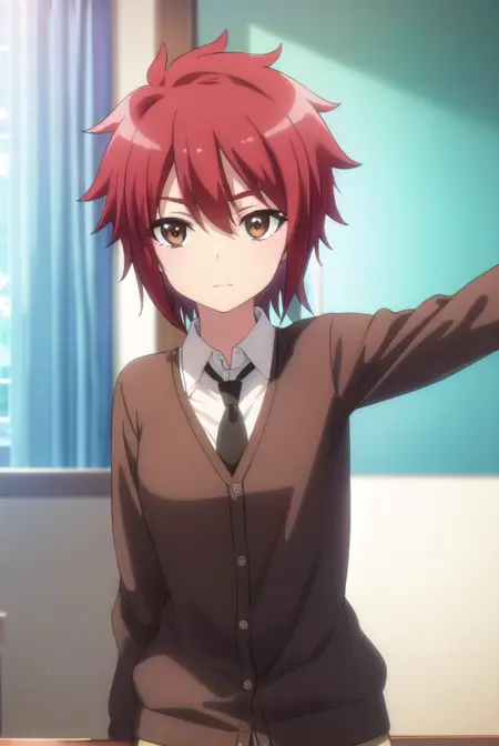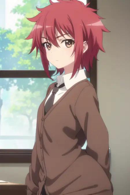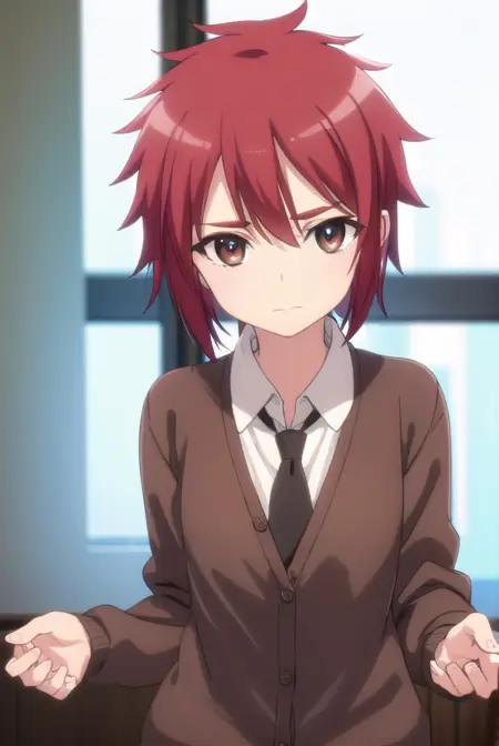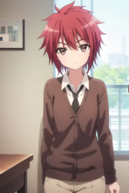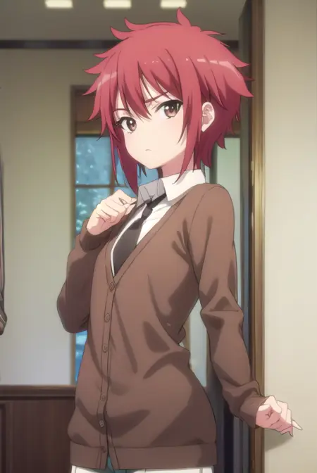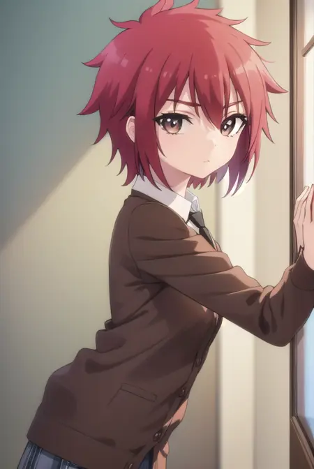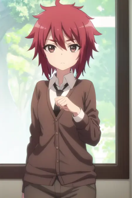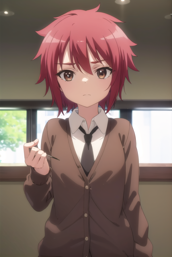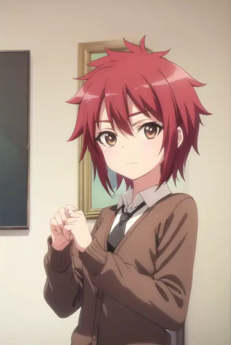 aoi yusa, short hair, (brown eyes:1.3), red hair,