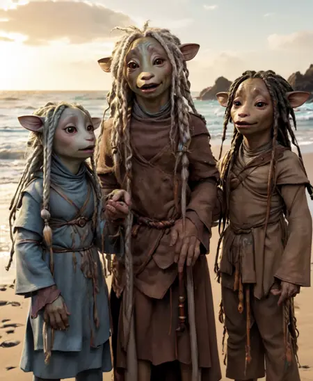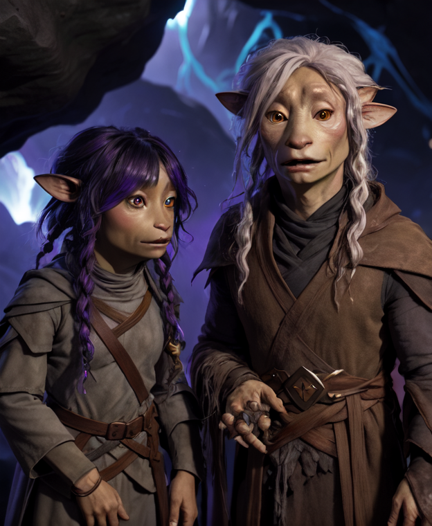 Originally had planned to train all the clans at 768x768 but forgot that too haha, same for the clans they would have tags like 'clanstonewood' or 'clansifa' etc. This did not translate well at all, and the tags won't work now anyway. The only way you can sort of get resemblances of the separate clans is to prompt the actual clan at the start, like 'grottan' or 'vapra', make sure you have the word 'gelfling' and if you want male or female, haircolours and styles (if you can remember them all), that will get you close enough.