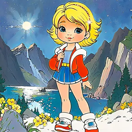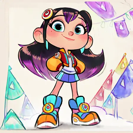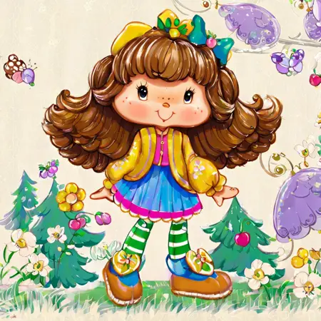 A lora model inspired by the classic character designs of Rainbow Brite and Strawberry Shortcake, as well as a other characters with a pixar-esque style.
