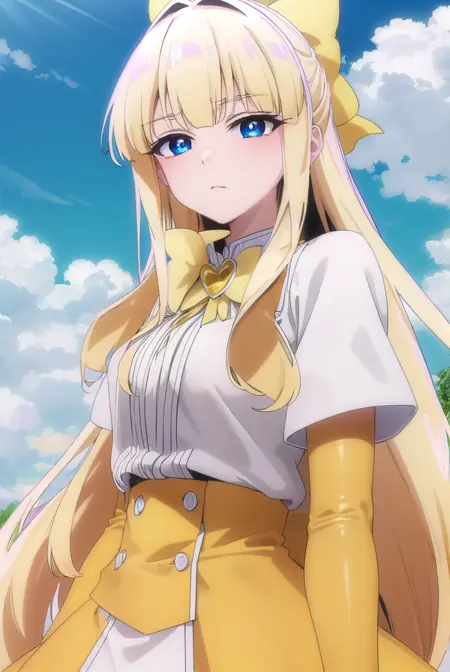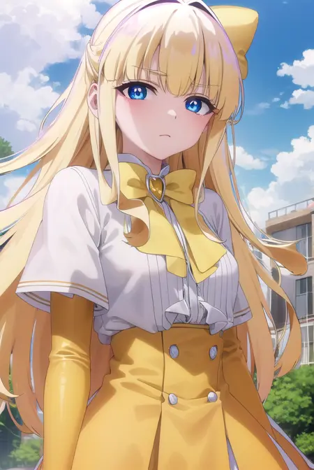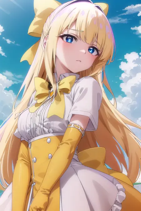 kaoruko tenkawa, long hair, blue eyes, blonde hair, bow, hair bow, yellow bow,