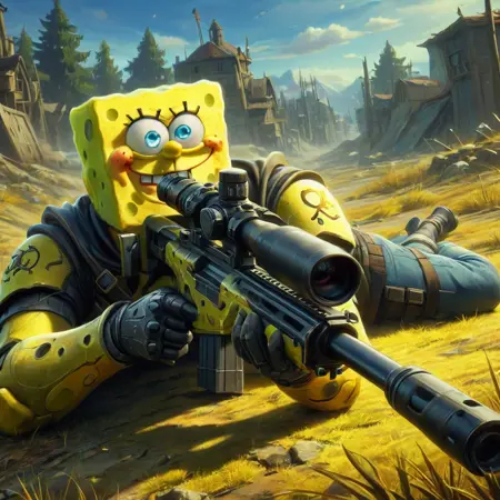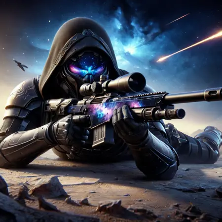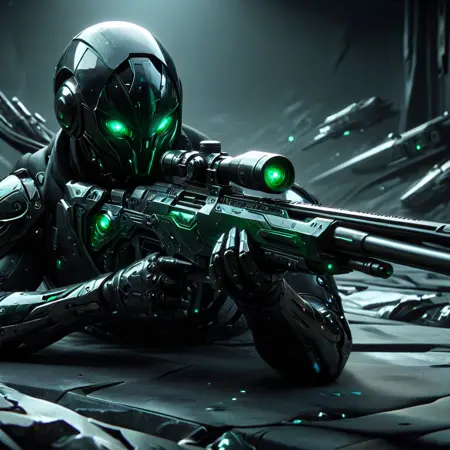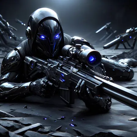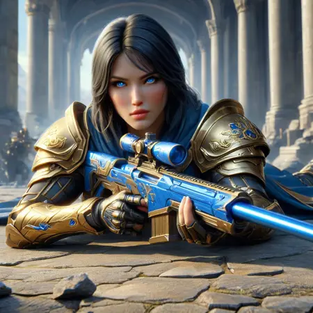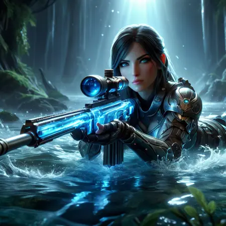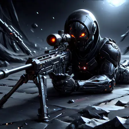 "score_9, score_8_up, score_7_up, upscale 2x, (a realistic action shot of a soldier wielding an (sniper rifle made of ice, pointing at the camera, wearing white armor, snowing, snow mountains in background:1.3):1.2)"