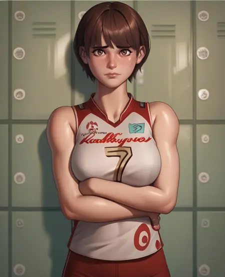 sastuki, brown hair, or light brown hair, - brown eyes, ponytail, or high ponytail,